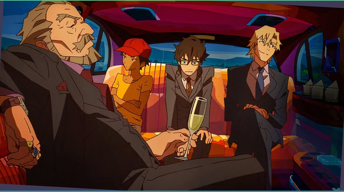 Анимация от WIT STUDIO — это яркие цвета, острые линии дизайна, сюрреалистические городские пейзажи. Даже фоны живут своей жизнью, взрываясь цветом и движением — словно само шоу участвует в афере.