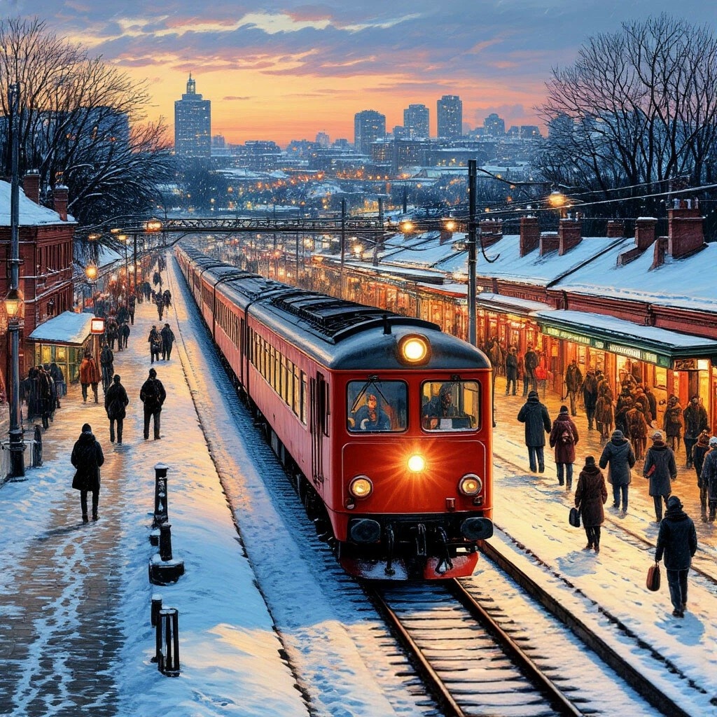 На перроне было холодно и шумно. Вокруг сновали люди с чемоданами, гудели локомотивы, раздавались объявления по громкой связи.