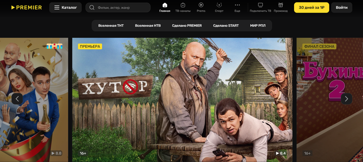 Онлайн-кинотеатр Premier: эксклюзивы (Батя 2. Дед, Универ. Молодые) и 200+ ТВ-каналов в 4K! Бесплатные каналы, оффлайн-просмотр, пробный период - premier.one
