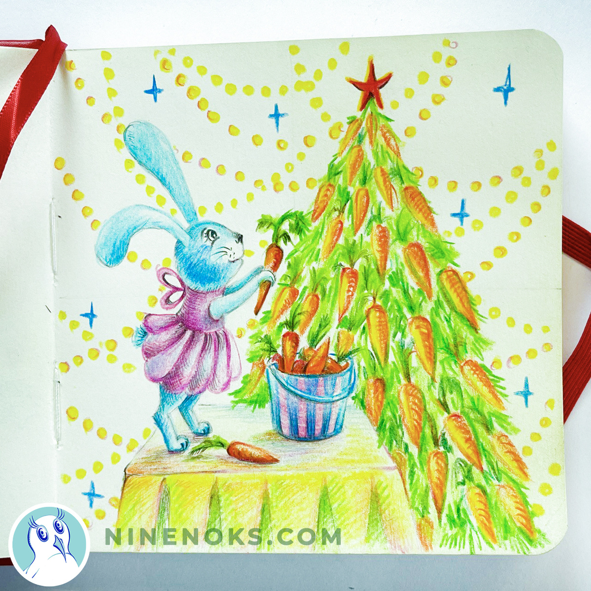 Т.е. морковка в лапках, сам зайка, столик со скатеркой, платье должны выделяться больше, чем елка и морковка на ней. Сохраняйте себе чтобы не потерять, делитесь с друзьями!