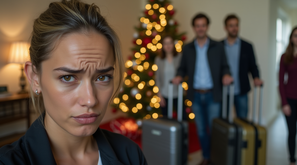На пороге стояли тётя Света – сестра свёкра, которую я видела всего дважды за семь лет брака, – её муж дядя Коля и их взрослый сын Артём. Все трое в пуховиках, с чемоданами, рюкзаками и пакетами, из которых торчали бутылки с шампанским. За их спинами мерцала гирлянда на подъездной двери, а в воздухе витал запах хвои от ёлки, которую мы с Сергеем только что нарядили в гостиной.