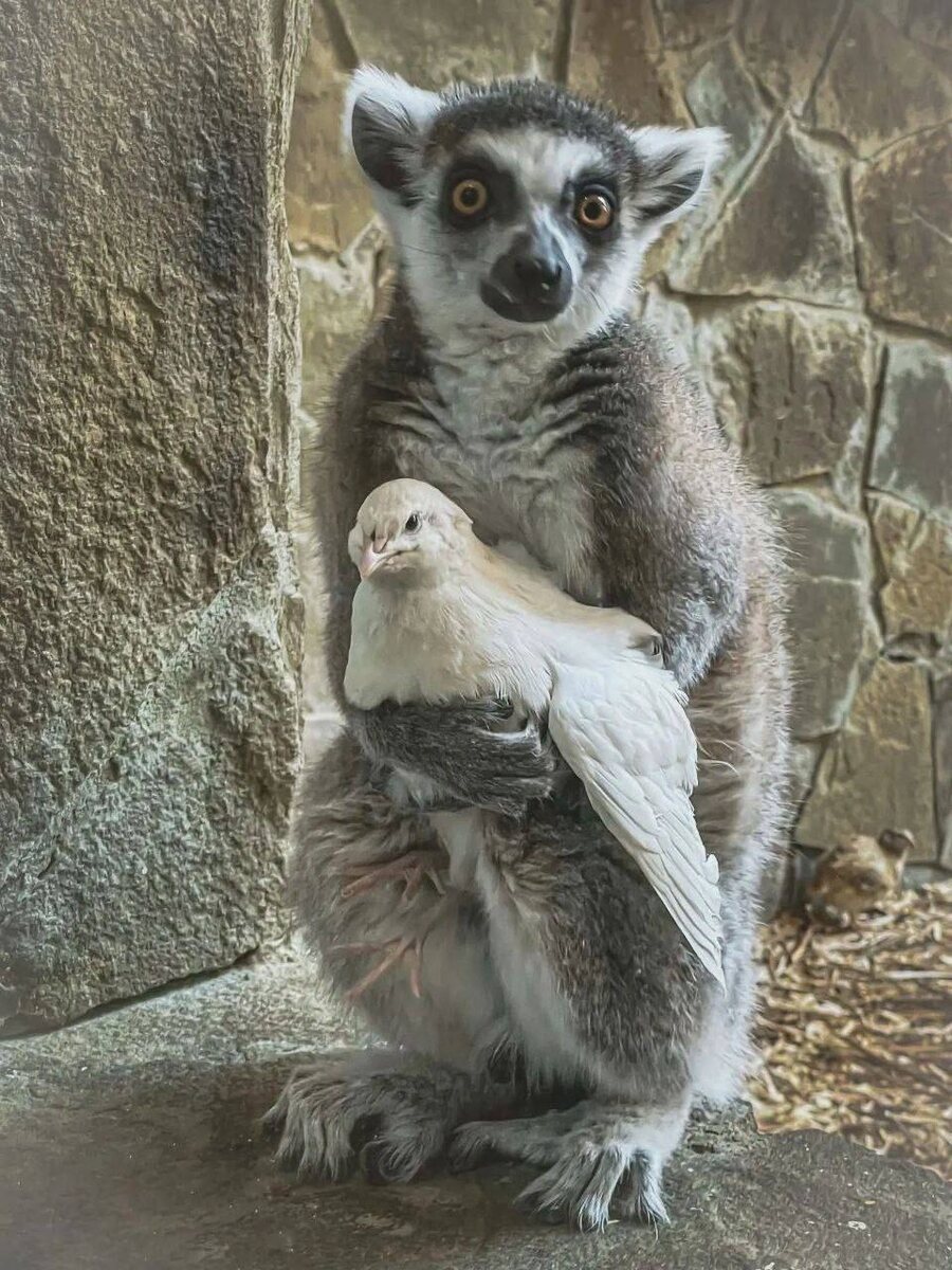 В Ростове-на-Дону лемур подружился с куропаткой, но не просто так