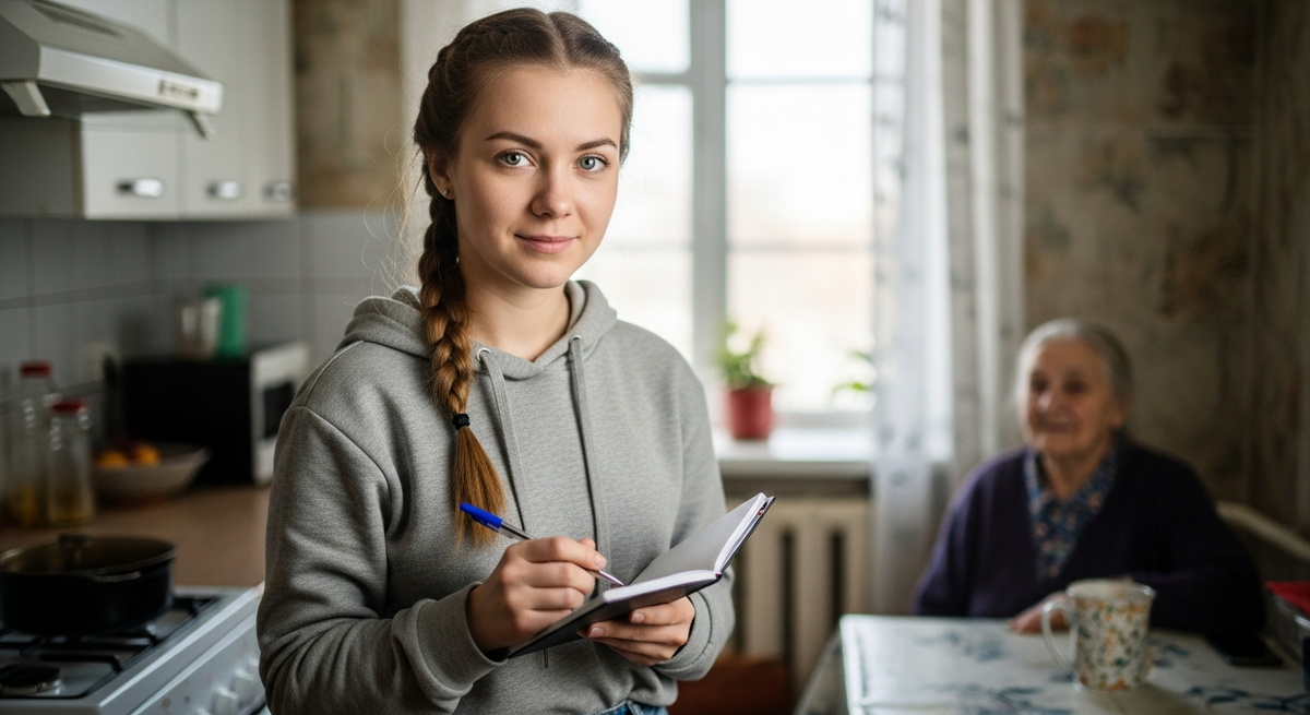 Девушка приготовила лёгкий ужин. "Вернутся эти родственники. Нужно будет им написать, чтобы купили еды, которая подходит бабуле."