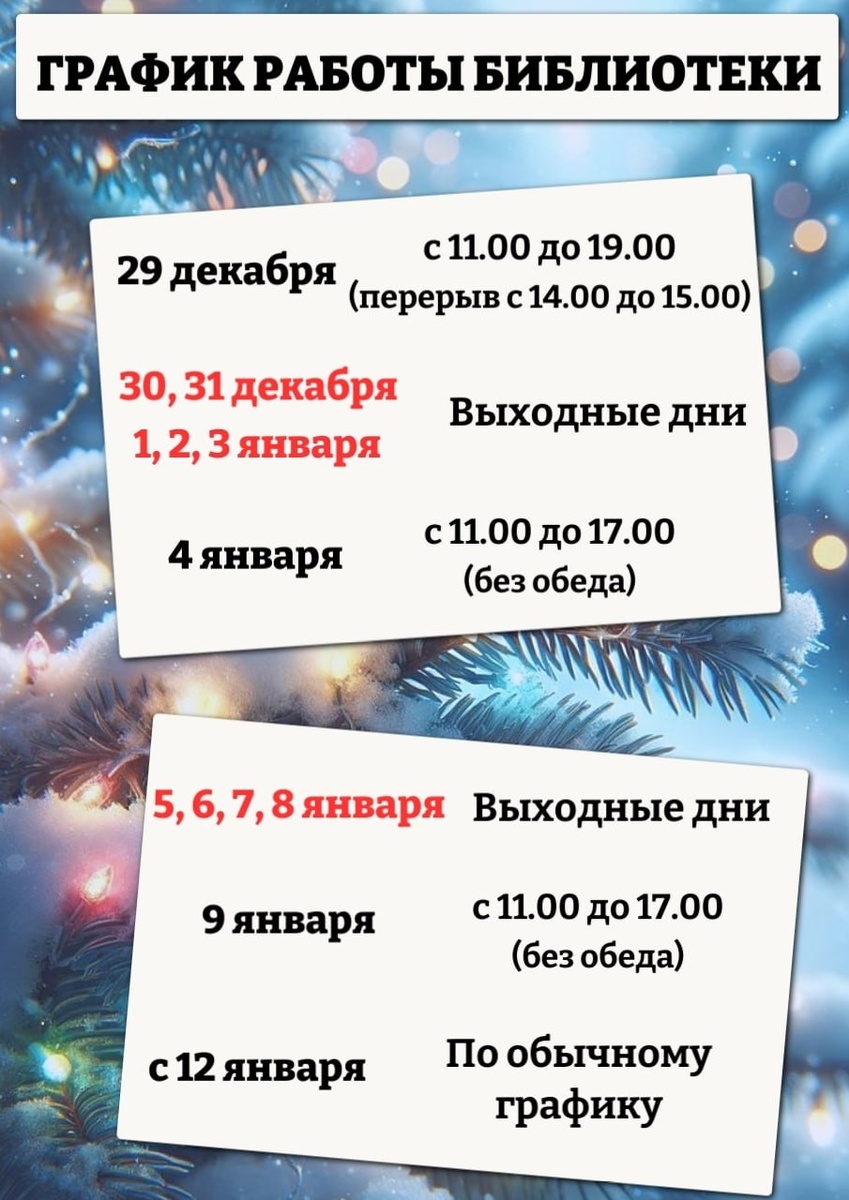 ВОТ ТАК БУДЕТ РАБОТАТЬ ЦЕНТРАЛЬНАЯ БИБЛИОТЕКА В ПРАЗДНИКИ