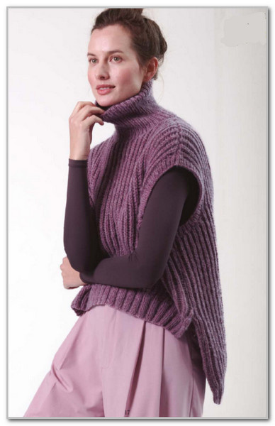 Вам потребуется: пряжа Katia Concept Cotton-Merino Glam (46% хлопок, 34% шерсть мериноса, 12% полиэстер, 8% полиамид, 120 м/50 г) - 350 (400, 450, 450) г лавандового цвета (310), спицы № 5,5; круговые спицы № 5, держатели петель.