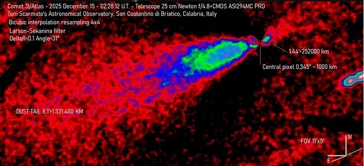 Межзвёздный объект 3I/ATLAS, стремительно пролетающий через нашу Солнечную систему, продолжает ставить перед учёными вопросы, на которые нет простых ответов. После серии аномалий, связанных с его траекторией, химическим составом и поведением, внимание исследователей привлекло новое, не менее загадочное явление — исключительно узкая и стабильная «анти‑хвостовая» струя, направленная в сторону Солнца. Согласно свежему анализу астрофизика Ави Лёба, вероятность случайного возникновения всей совокупности наблюдаемых особенностей объекта оценивается как один шанс на четыре миллиарда, что заставляет задуматься о природе этого небесного скитальца. Анти‑хвост: аномалия среди аномалий У большинства комет, приближающихся к Солнцу, под действием тепла и солнечного ветра образуется характерный хвост, всегда направленный прочь от светила. Однако у 3I/ATLAS, помимо стандартного хвоста, был зафик Показать полностью... Терра инкогнита | Неизвестная земля