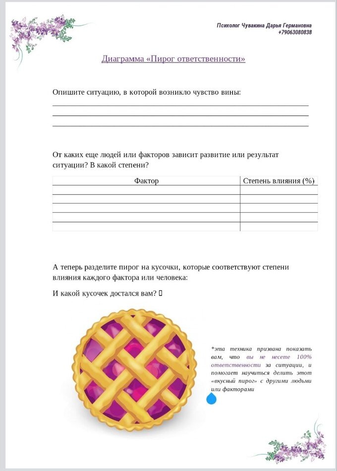 Дорогие друзья! Ко мне на консультации часто приходят люди, испытывающие чувство вины. Это чувство бывает невыносимым и навязчивым, что само по себе довольно тяжело переживать. Но еще хуже, что очень часто чувство вины появляется необоснованно только лишь потому, что мы берем на себя почти полную ответственность за поступки или чувства других людей. Мы чувствуем себя виноватыми за чужие ошибки, за чужие эмоциональные реакции или поступки. Когда-то в детстве нас винили, что мы "расстроили бабушку, не доев кашу", "довели до слез подружку, не отдав ей свою книжку", "разозлили маму, не выучив таблицу умножения ко вторнику" и т.д. А теперь мы чувствуем, что несем огромный груз ответственности за эмоции и поступки чуть ли не всех окружающих. Справедливо? Нет! Но мы уже привыкли отвечать за всё и бесконечно себя винить. Что делать? Переучиваться. Как? Осваивая новый навык - умение отделять собственную ответственность от чужой, а также замечать влияние разных других факторов на сложившиеся обс