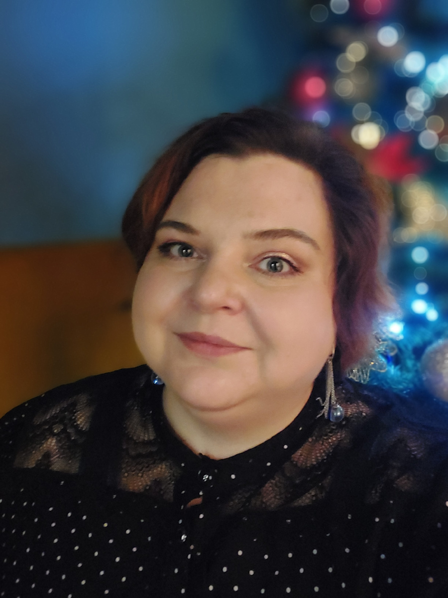 Блузка под горло, но с необычным и интересным вырезом на декольте. Мне кажется этот вырез образу придаст пикантности и очень красиво подчеркнёт пышную грудь.