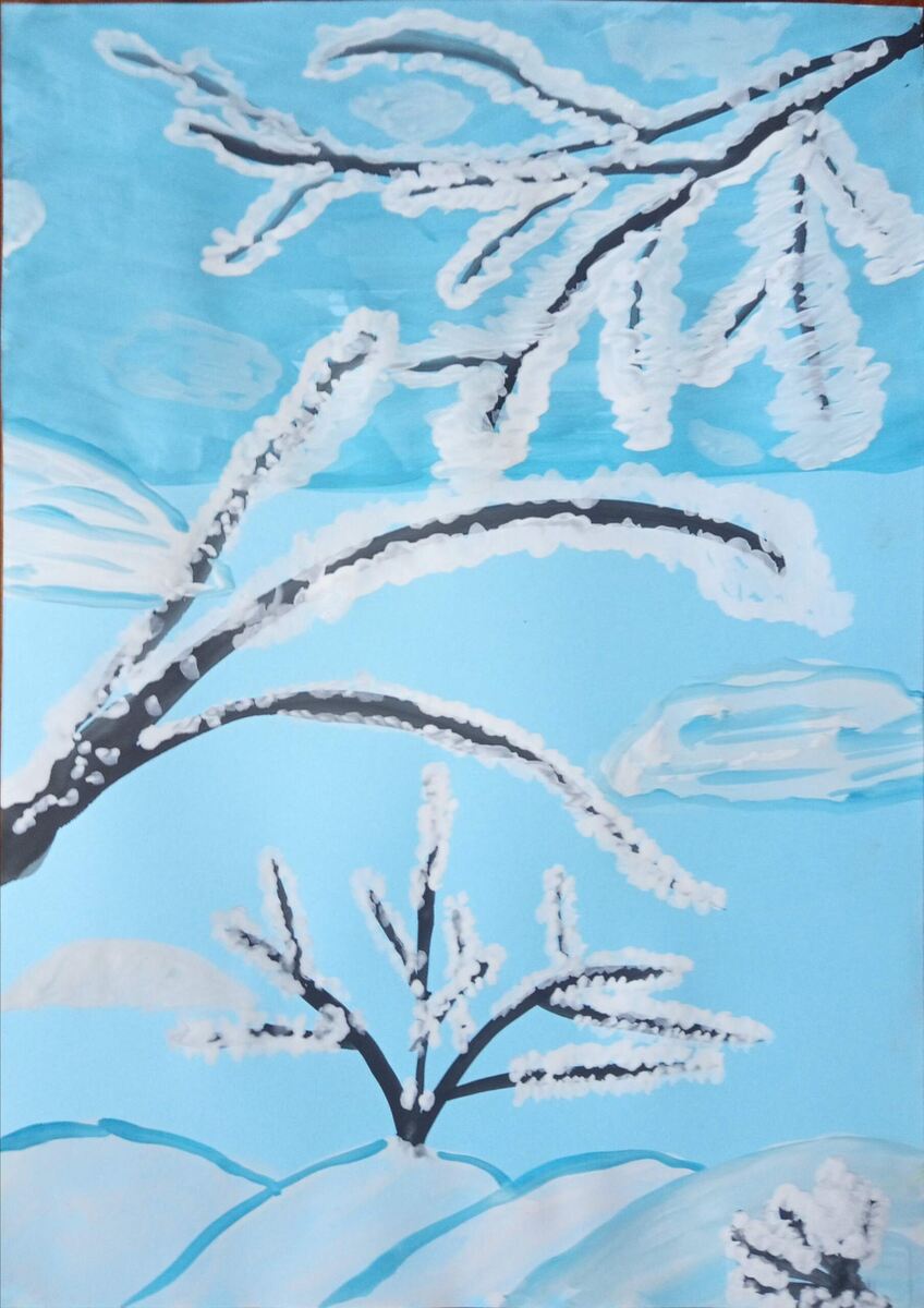 "Иней" Гуашь, тонированный картон. 2025 г. Работа Светланы Ковальчук - художницы - коллажистки Международного интернет-объединения художников и литераторов с ограниченными возможностями здоровья «Грани преодоления».