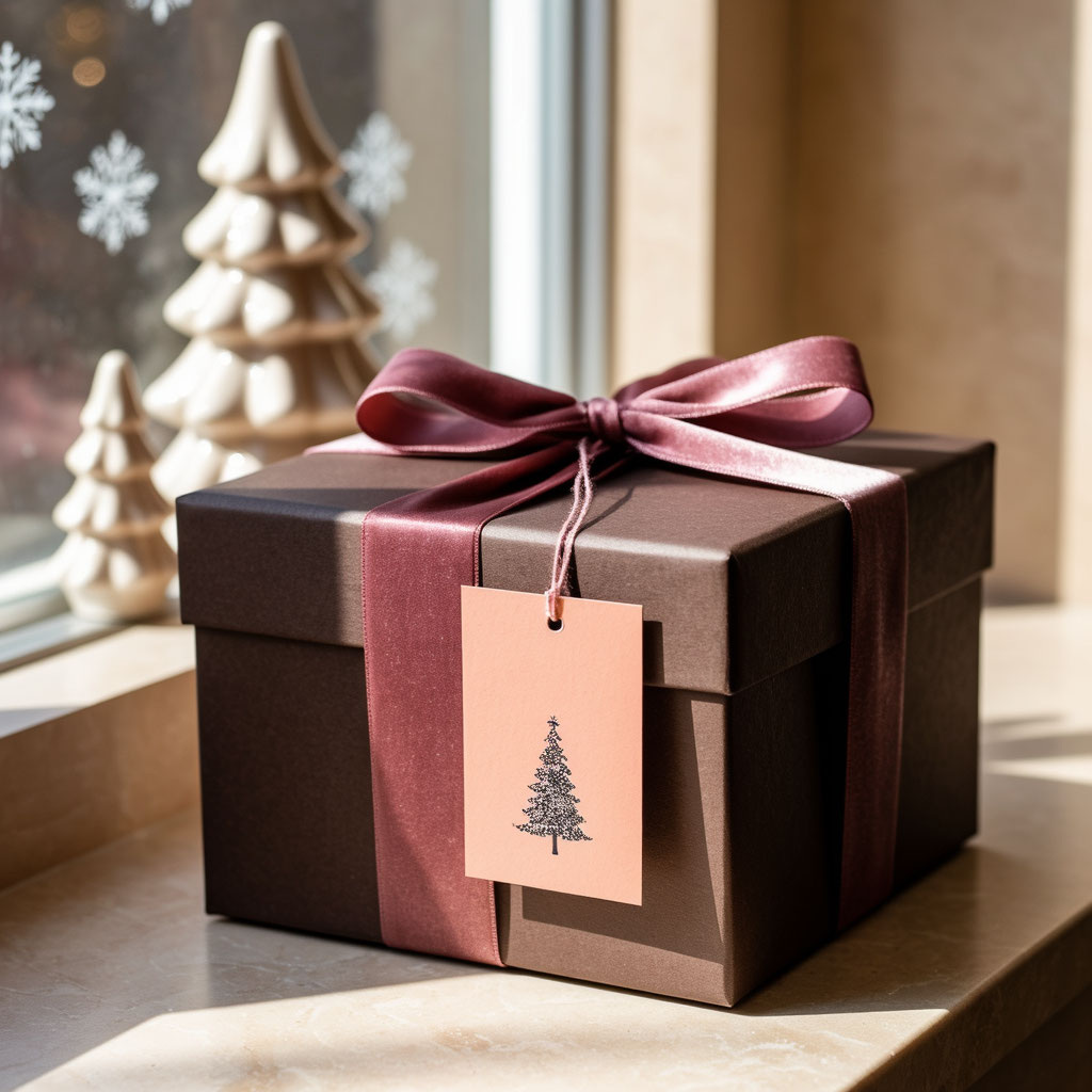 Упаковка — в шоколадно-коричневой матовой бумаге (цвет 2025 года), перевязанная льняной лентой.