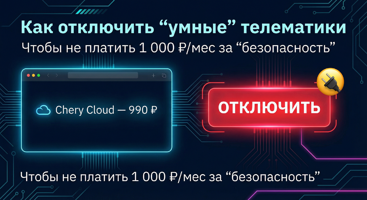 Но в договоре — маленький шрифт: «Автомобиль автоматически подключён к Chery Cloud. Первые 3 месяца — бесплатно. Далее — 990 ₽/мес». 12 месяцев = 11 880 ₽ — за сервис, который я не использовал и не просил. Почти все новые Chery, Geely, Haval, Jetour продаются уже подключёнными к телематике: