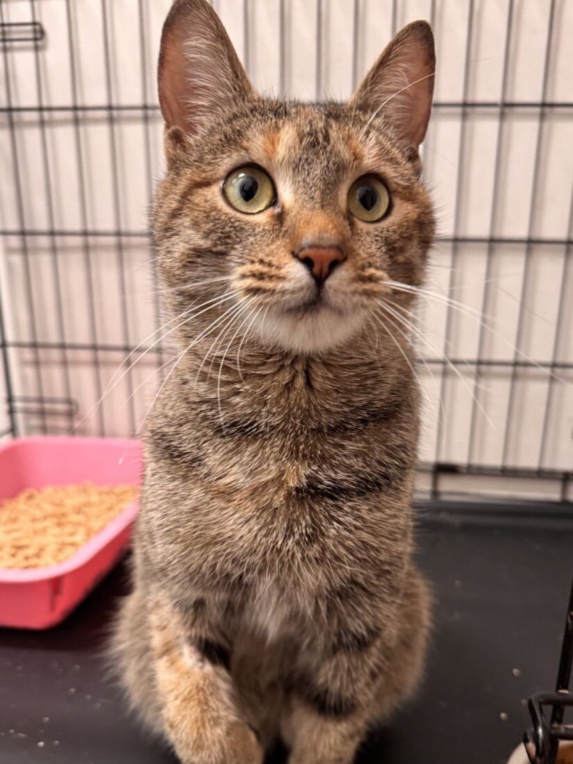 Маняша внезапно появилась на улице в месте, где кормят уличных кошек. Маняша сразу подбежала, но кушать не стала — она начала ласкаться и просить о помощи. Через час пришли — кошечка на месте, еда не тронута, а кошечка опять трется об ноги и просит