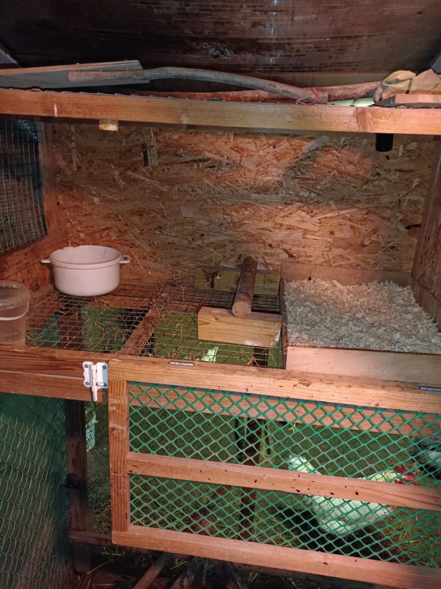 До этого, тут на сеточное дно стелил солому. Оказалось не эффективно. Вечно влажнная. И постоянно убирать нужно. Ибо и туалет тут же.