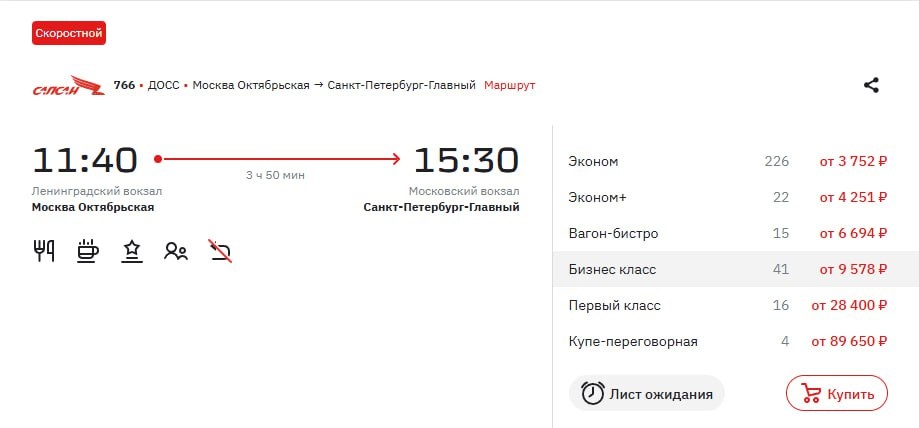 И еще немного «Сапсанов» вам на Новый год. РЖД решили назначить по дополнительному составу не только в конце года, но и во все праздничные январские дни. Из Москвы высокоскоростной поезд №766 будет отправляться в 11:40, из Петербурга № 763 в 11:00. Кстати, проверили: пока что есть пара сотен мест в экономе на 1 января - в остальных составах эти кресла уже закончились. Странно, правда, что не по 2026 руб. как ранее обещал перевозчик🤷♂️ Ну что теперь всем хватит или еще надо? @tourdom