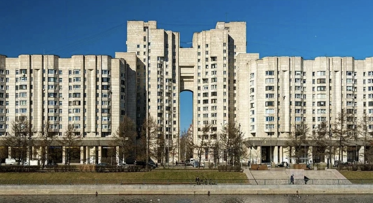 - Дома на Новосмоленской набережной в Санкт-Петербурге. Один из популярных модернистских элементов — «ножки», на которые поставлены здания.
