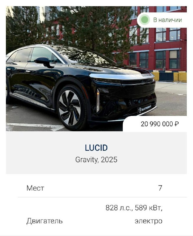 Новые автомобили 2025 г.в. в наличии - доступны к покупке 🎆 – LUCID Gravity ⚡️ – KIA Sorento IV – INFINITI QX60 AUTOGRAPH AWD – ACURA MDX TYPE S ULTRA –TOYOTA 4Runner TRD Pro – CADILLAC Eslalade ESV ------------------------------ Привозим авто под заказ сразу на заказчика (физическое лицо). Минимальный депозит, разумные сроки, таможня РФ! ------------------------------ Работаем для Вас, несмотря ни на что ⚡️ –————————————–––– Lucky Car – ELECTRODRIVE Понедельник – Пятница 11.00 - 20.00 Суббота – 11.00 – 17.00 Воскресенье – по договорённости ◾️ Москва, Партийный пер. 1 ◾️ +7-916-235-22-99 📱 📱 ◾️ +7-495-212-92-29 ◾️ info@electrodrivemoscow.ru ◾️ electrodrivemoscow.ru ✅ Навигация по каналу Telegram | YouTube | RuTube | VK | VK Видео | Дзен | #вналичии