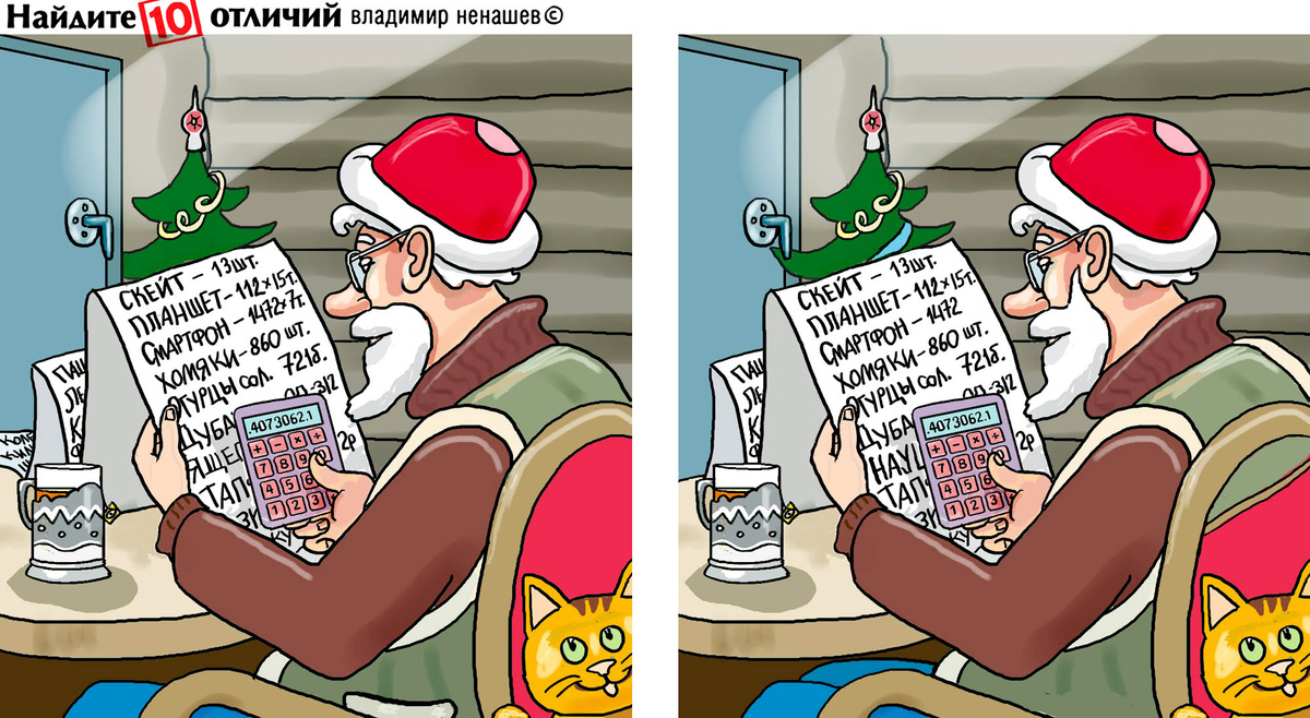 10 отличий и тест на внимание. Посмотрим, как Дед Мороз собирает подарки. Позитив.