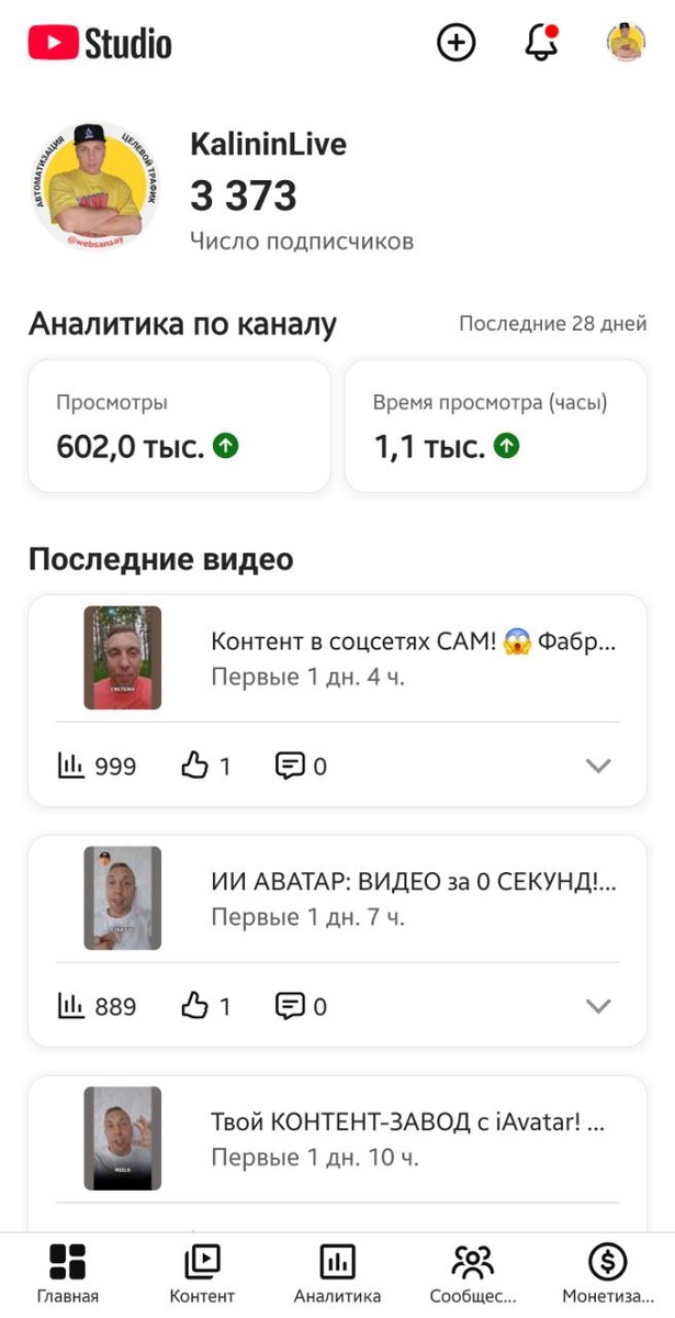 +. Пока со скриптом воюю, "переобул" свой n8n и сделал так, чтобы все автоматизации с 1+ версий работали как надо. Но сейчас не об этом. Гляньте на скрин моей статистики с Ютуба - это то, что выдает мой контент-завод 🚀 Для тех, кто реально хочет монетизировать трафик и шарит, что сейчас идет жесткая борьба за внимание: чем больше вас видят, тем больше узнаваемость и выхлоп с воронок. Мой контент-завод - это история про минимум действий и максимум профита: - Работает на полном автомате или через ТГ-бота. - Принимает всё: текст, ссылки на TikTok, Reels, Shorts, VK клипы или просто видео. - Сам монтирует: накладывает вставки, музыку, логотипы, субтитры, заголовки и пишет описания. - Публикует во все соцсети сам. Взял, отправил, создалось, опубликовалось. - ИИ Аватар с вашим голосом или вымышленный персонаж. По расходам - сейчас на бесплатном OpenAI всё выходит по цене аренды сервера, это примерно 700₽ в мес. Ограничения только у самих соцсетей (до 100 роликов в день), а так - делай с