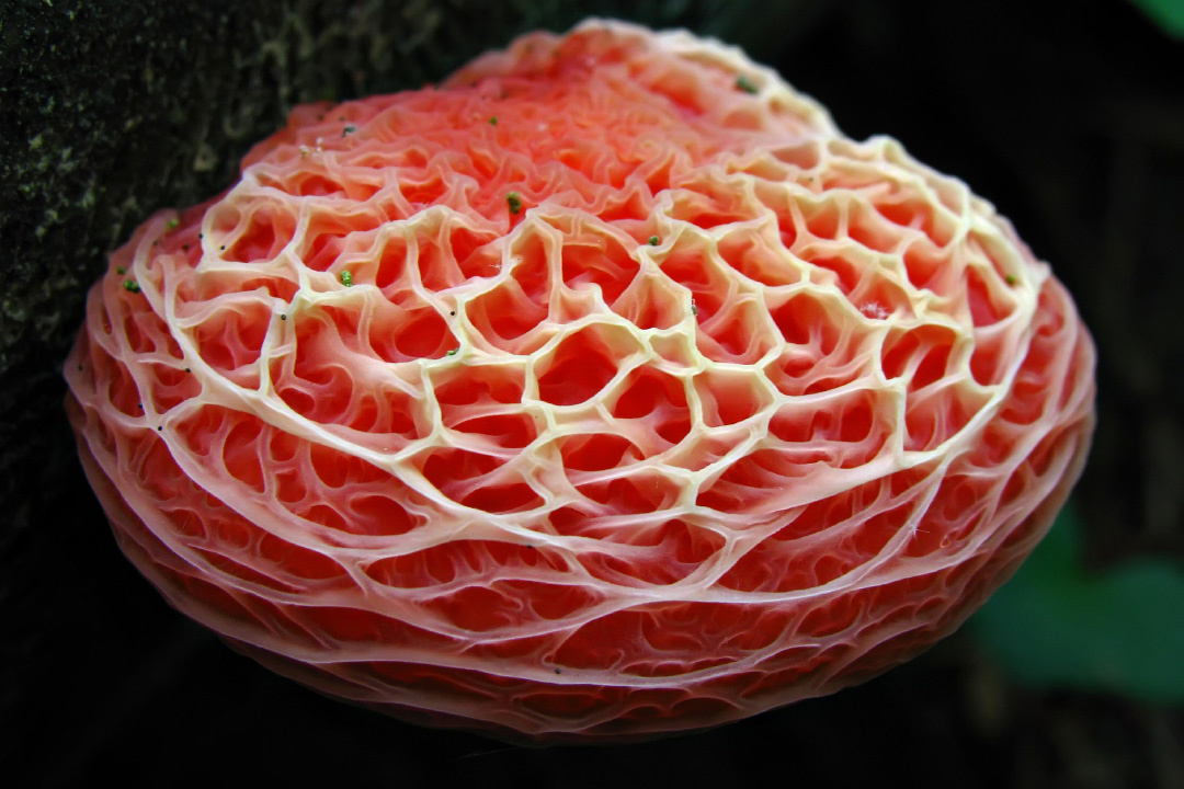 Привет, мои дорогие любители необычной земной природы, чего только не встретишь, прогуливаясь по летнему лесу, и, честно говоря, именно в такие моменты особенно ясно понимаешь, почему наши предки так охотно населяли чащи духами, лешими и прочими существами — фантазия тут просто не могла пройти мимо. Вот вы идёте по тропинке, смотрите под ноги, и вдруг натыкаетесь на нечто такое, что легко могло бы быть кадром из фантастического фильма или артхаусного сериала про параллельные миры, и я уверен, вы бы тоже на секунду усомнились, в какой именно реальности сейчас находитесь. Знакомьтесь, родотус дланевидный (Rhodotus palmatus) — гриб с внешностью настолько странной, что его научное имя звучит почти скромно по сравнению с тем, что он собой представляет. Встречается он в лиственных лесах умеренных широт, предпочитая мёртвую древесину, особенно валежник вязов, где может тихо и неспешно расти, оставаясь почти незамеченным до тех пор, пока не попадёт в поле зрения внимательного прохожего. Внешно