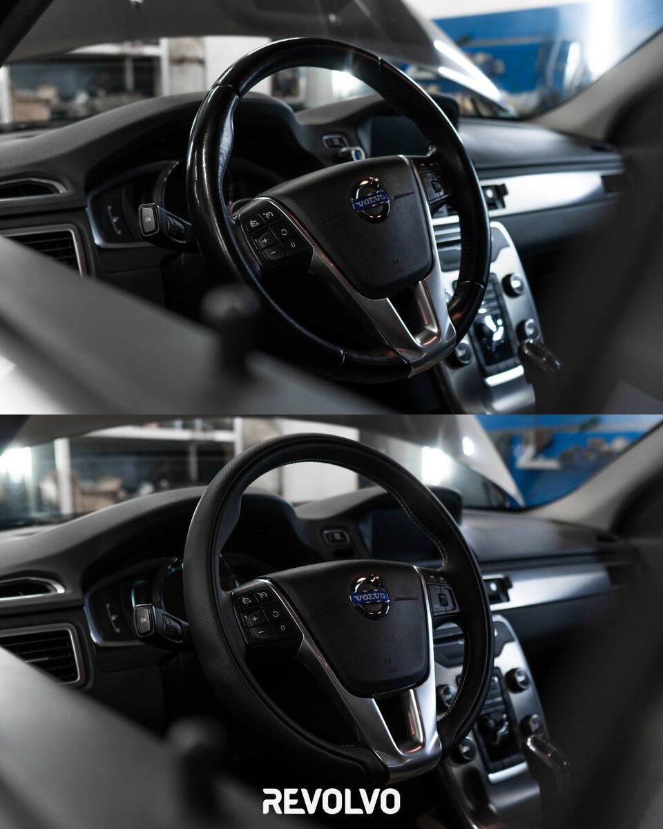 В работе побывал Volvo XC70, где мы освежили интерьер, заменив самое главное в управлении автомобиля, а именно - руль (на новый