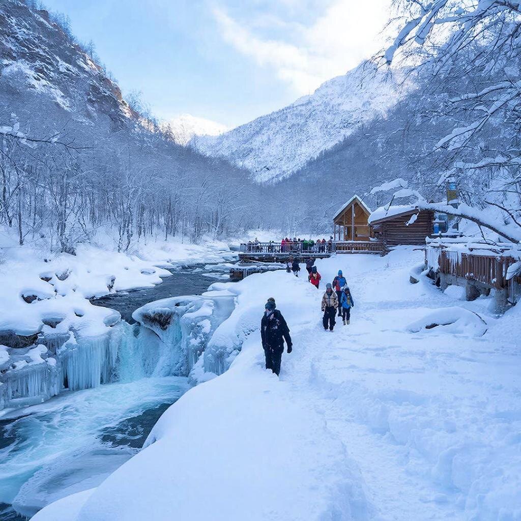 Купание в горячих источниках Жемчуга зимой — это особое удовольствие. Представьте: вокруг мороз и снег, а вы погружаетесь в воду температурой около 40 градусов, от которой поднимается густой пар, создавая эффект природной сауны под открытым небом.