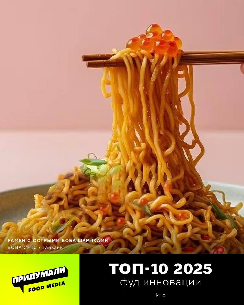 Сегодня ТОП-10 2025 в категории «фуд инновация» со всего мира (добавлены все ссылки с оригинальных постов) Смотрим: 🟩Рамен с острыми Боба шариками / ВОВА СНІС / Тайвань 🟩Светящийся фруктовый лёд с витаминами / MAGNUM / Европа 🟩Кофейные баблы с кофеином / PEET’S COFFEE / США 🟩Шоколад без какао на основе солодовой ржи / FAZER / Швеция 🟩Салатные пюре / LIQUID + / США 🟩Функциональный йогурт для здоровья кожи / MEIJI / Япония 🟩Искусственное молоко, идентичное натуральному / REMILK / Израиль 🟩Финиковая кола без сахара / MILAF / Мир 🟩Энергетик в спрее / ALLDAY / США 🟩Белковые батончики с протеином из воздуха / SOLEIN / Финляндия Подборка ТОП-10 2025 в категории «фуд коллаборация» была 👉 вот здесь 👉подписаться на @pridumali #foodтренды