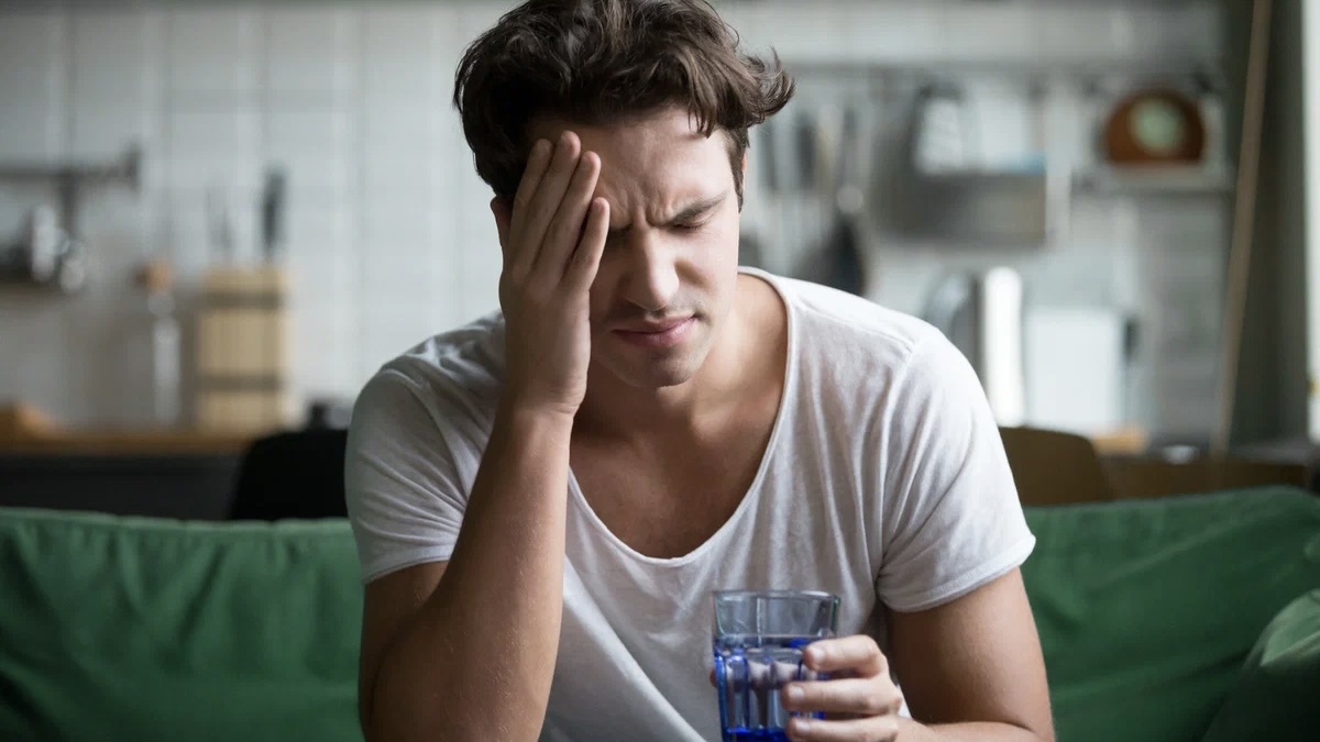 Именно совокупность этих факторов создаёт характерный набор симптомов: головную боль, тошноту, сухость во рту, светобоязнь, тремор и раздражительность.