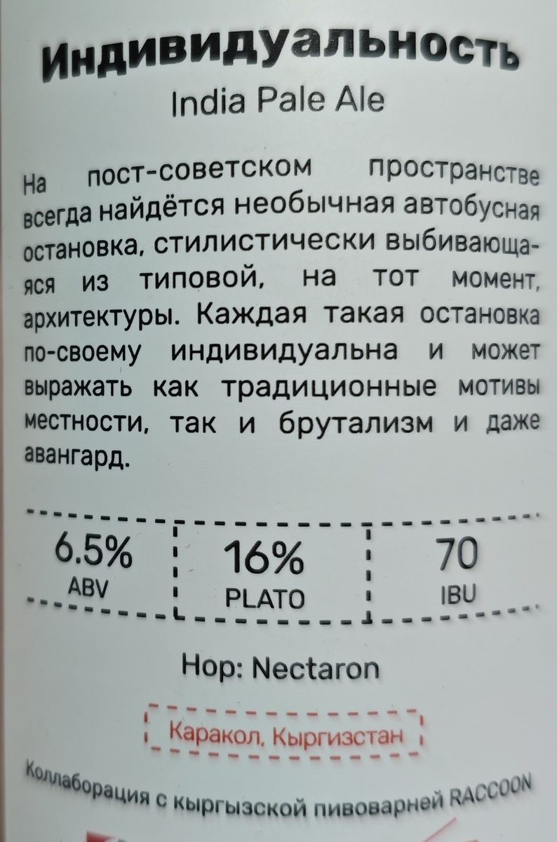 Сингл-хоп IPA на хмеле Nectaron от White Stone Brewery (ООО "Пивоварня Вайт Стоун"), сваренный под контролем на мощностях ООО "Боярин и Ко" в городе Лыткарино. По старой доброй традиции значение алкоголя на этикетке указано разное: 6.5% и 6%. Описание традиционно можно прочитать прямо на этикетке: ********************************************************************************** Плотность: 16%. Горечь: 70. Состав: вода подготовленная, солод пивоваренный ячменный, солод пивоваренный пшеничный, хмель, дрожжи пивные. Срок годности: 365 суток при температуре от 0℃ до +4℃. С даты розлива моей банки прошло чуть более 2-х месяцев. ********************************************************************************** Пена довольно пышная и стойкая. Аромат сильный и интенсивный: оттенки цитрусов, чего-то тропического и то ли смородины, то ли крыжовника (чего-то ягодного в общем). Карбонизация умеренная. Во вкусе также микс чего-то тропического, цитрусового и смородины с крыжовником. Как будто бы ф
