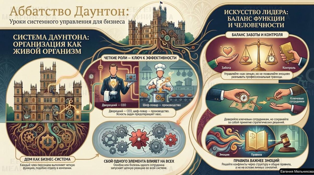 «Аббатство Даунтон» это не просто историческая драма — это практическое пособие по управлению людьми и системами. Владельцы Даунтона ведут свой дом как небольшое предприятие, где структура, функции и отношения переплетены тонкой психологией, а каждый элемент системы важен для её устойчивости.