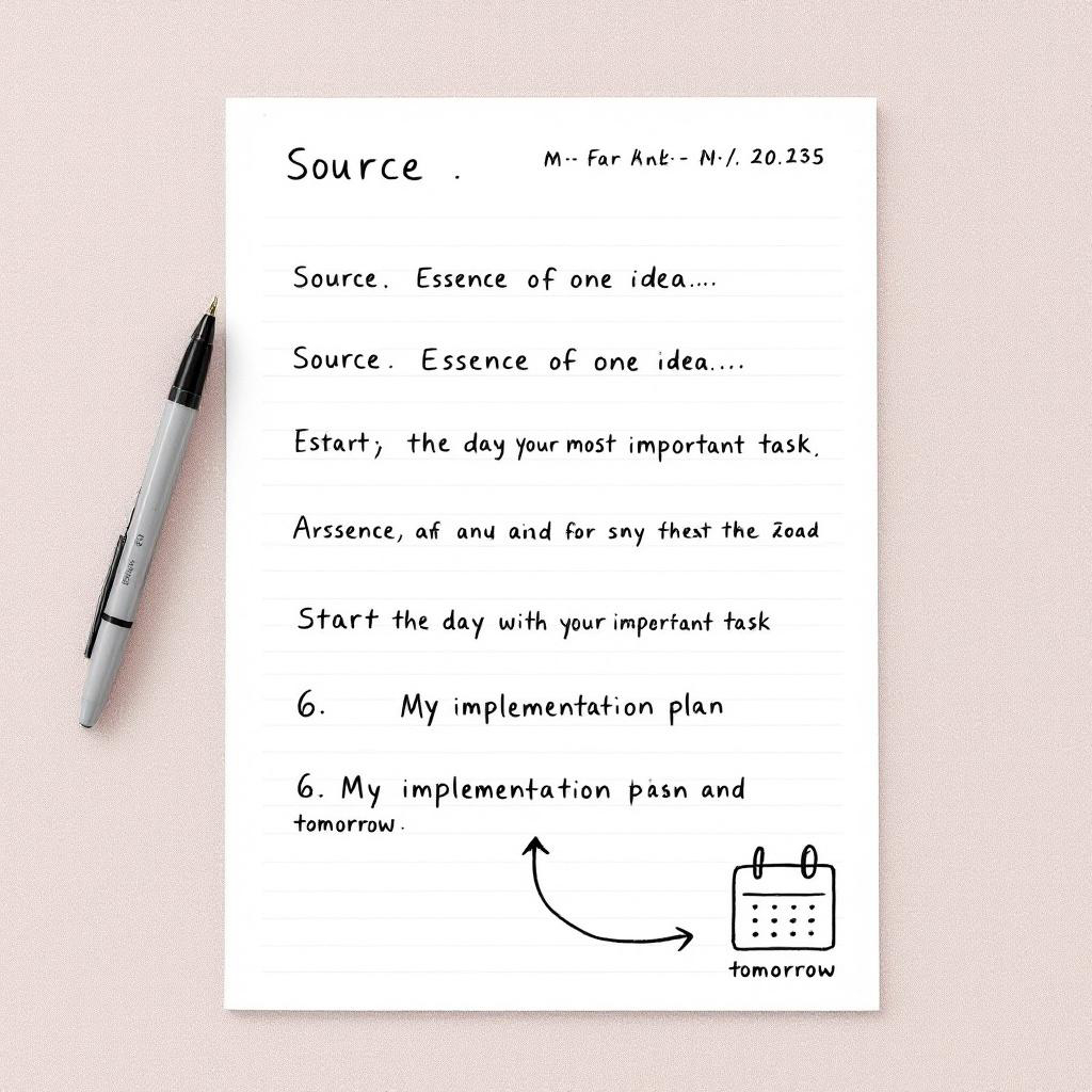 Потребление информации без внедрения — интеллектуальное обжорство. Этот шаблон — противоядие. Он превращает пассивное слушание подкаста, чтение книги или просмотр видео в чек-лист для действий. Его цель — не запомнить всё, а выцепить одну идею и запустить её в свою жизнь в течение 72 часов.