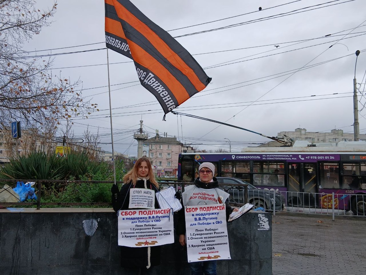 13.12.2025 г в г Симферополе вышли в поддержку Президента РФ Путина и его повестки на суверенитет. 📣 На массовом пикете активист НОД Крыма Савченко Наталья и координатор НОД Феодосия Бабакина Ирина проводили информирование населения о плане Победы в войне с врагом США ✅1. Суверенитет ( отмена независимости Украины) ✅2 Ядерное нацеливание стратегических ракет на территорию врага . Враг США. ✅3 Реформы НОД, для чего предоставить чрезвычайные полномочия Путину во главе Госсовета. 🛑 Непрошенный дождик внёс коррективы, некоторых разогнал, кого- то напугал, но не бойцов НОД Наталью и Ирину, которые удерживали позиции не смотря ни на что и провели массовый пикет до конца) 🗞 Раздача газет нацкурс, листовок 50 📝 Сбор подписей Иск,ЧП: Са́вченко Н 28/28 Бабакина И 22/22