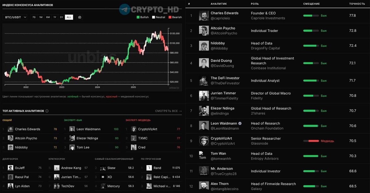 🍽 CEO CryptoQuant устал скроллить ленту Twitter в поисках прогнозов, поэтому создал сервис «Unbias» с консенсус-мнениями топовых аналитиков.