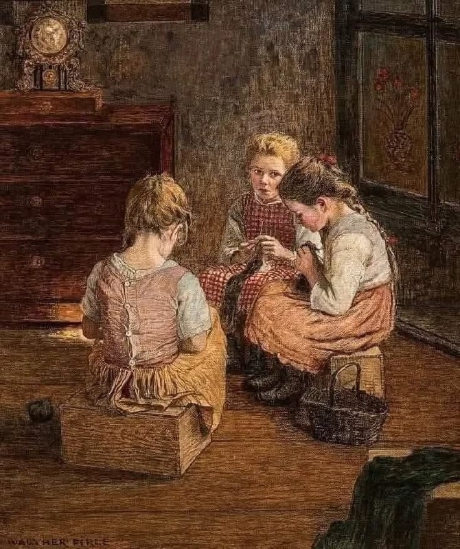 "Три девушки вяжут" (немецкий художник