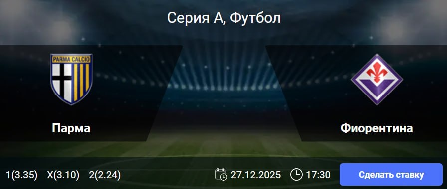 Учитывая хронические проблемы обеих команд в атаке, особенно в контексте домашних игр «Пармы» и выездных «Фиорентины», ожидать голевой феерии не приходится. Наиболее вероятным исходом видится вязкая борьба с минимумом забитых мячей. 🎯 ТМ (2.5) 🎲 кф (1.64) 👉 СДЕЛАТЬ СТАВКУ В БК WINLINE 🎁 ФРИБЕТ WINLINE - 3000₽ (промокод: BETWIN) 👉 СМОТРЕТЬ ПРОГНОЗ 👇 Подпишись на нас 🧿 ВКонтакте ✈️ Телеграм 📎 Сайт
