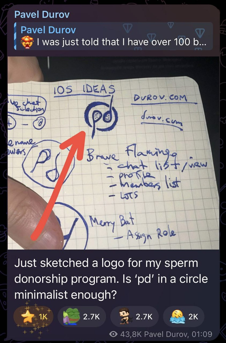 Дуров создал лого для своей СПЕРМЫ — так выглядит набросок изображения своей кампании по донорству