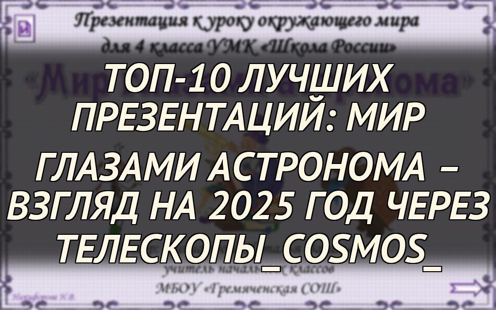 В этой статье мы представляем ТОП-10 лучших презентаций на тему "Мир глазами астронома", отобранных по критериям оригинальности, научной глубины и способности увлечь аудиторию. Каждая из них от ведущих экспертов, описывающих астрофизические явления, черные дыры, поиски внеземной жизни и влияние космоса на нашу повседневную реальность. Давайте погрузимся в эти увлекательные истории, которые расширяют горизонты нашего понимания мира.