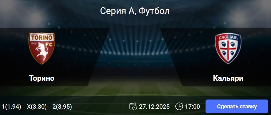 История личных встреч также говорит в пользу гостей: «Кальяри» забивал в 10 из 12 последних матчей на поле «Торино». Учитывая слабую оборону хозяев и атакующую нацеленность гостей, ставка «Кальяри ИТБ 0,5» с коэффициентом 1.55 представляется весьма перспективной. 🎯 ИТБ2 (0.5) 🎲 кф (1.55) 👉 СДЕЛАТЬ СТАВКУ В БК WINLINE 🎁 ФРИБЕТ WINLINE - 3000₽ (промокод: BETWIN) 👉 СМОТРЕТЬ ПРОГНОЗ 👇 Подпишись на нас 🧿 ВКонтакте ✈️ Телеграм 📎 Сайт