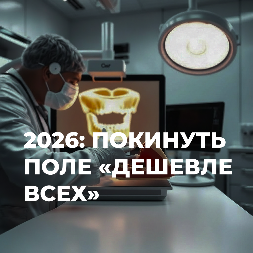 Новый, 2026 год, приносит в стоматологический рынок не просто новые тренды, а жёсткое разделение правил игры. Уже сейчас ясно: стремление конкурировать по цене на типовые изделия — прямой путь в тупик. Если вы не крупная фабрика, играющая на объёмах, эта битва проиграна ещё до начала. Но это не конец рынка. Это его взросление и разделение на два принципиально разных сегмента. Главный вопрос для владельца лаборатории в январе 2026: на каком из этих полей вы будете строить свой бизнес в ближайшие три года? Три стратегических вектора для игры на этом поле в 2026 году: Не ждите, пока ситуация прояснится. Она уже ясна. Действуйте. Прогноз: