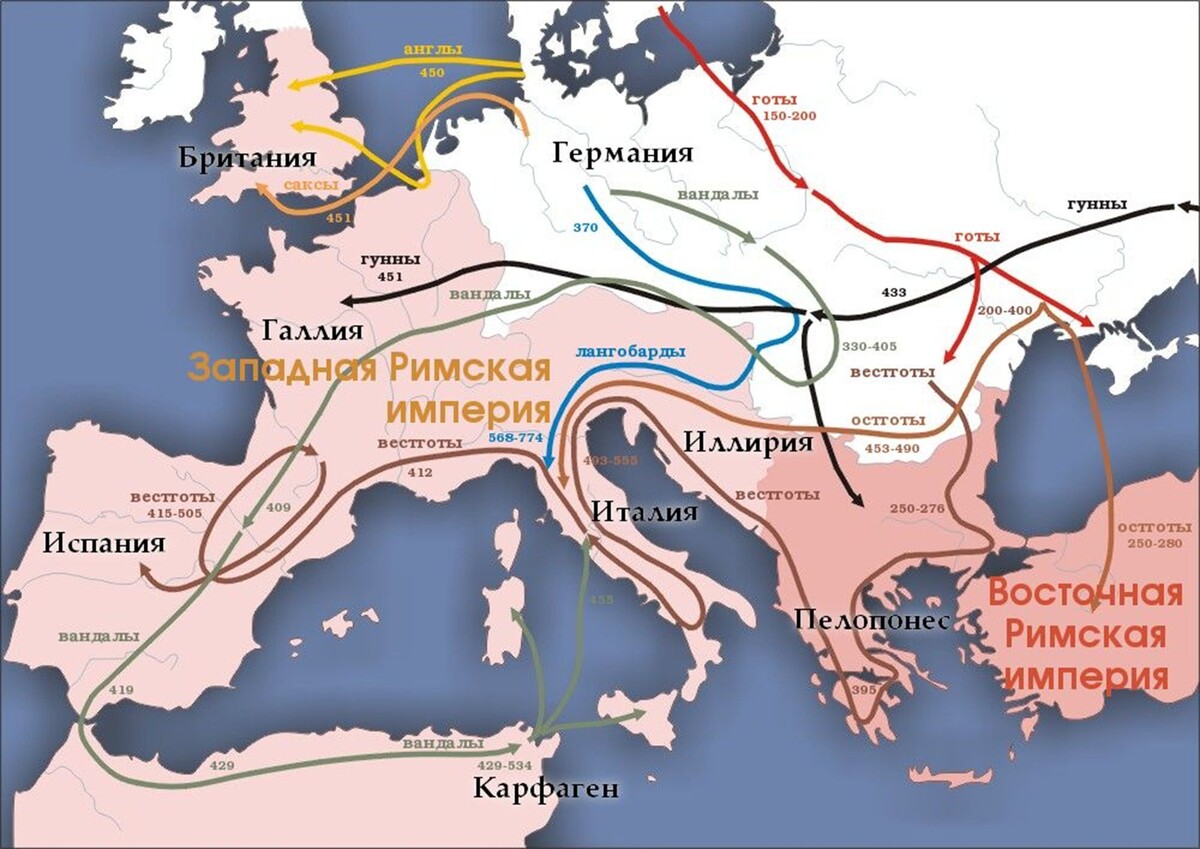 Остготы (восточная группа) долгое время находились под властью гуннов, и их самостоятельная миграция в Италию при Теодорихе Великом произошла намного позже, в конце V века.