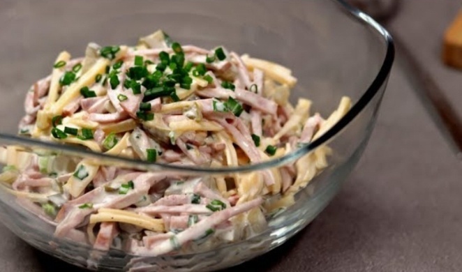 …И выручает, если чего-то не хватает. А это удивительный салат покорил однажды простотой, вкусом и ….назову это функциональностью. Серьезно: у него несколько очень-очень важных функций. Это отличный закусочный салат - легкий, сытный. Это и привычная глазу “нарезка” по сути: какой же праздник без нее. И - это невероятно простое, “ленивое” блюдо: если времени на приготовление различных салатов в обрез - Швейцарский салат выручит. А еще - он хорош на небольшом праздничном столе, который от разносолов не ломится - для тихого семейного праздника. И для тех, кто встречает праздник на работе :) Или для тех, кто ну очень не в настроении и особенно готовить не собирается. Кажется, все перечислила, все мотивы его приготовить. Хотя - нет: главный мотив забыла. Это просто вкусный салатик :) А почему Швейцарский он? Я точно не знаю. Так готовят в странах Европы, и называют его по-разному, в т.ч. Швейцарский. Впрочем - зачем далеко ходить: похожий салат, только с большим количеством ингредиентов и с