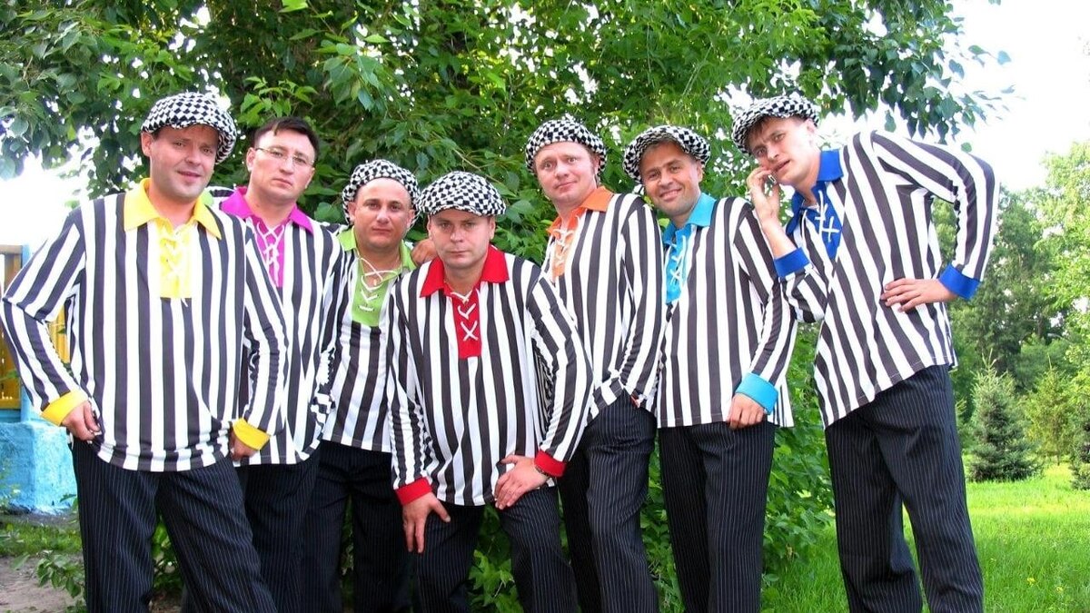 «В конце концов мы поняли, что самое оптимальное – это «Дети лейтенанта Шмидта», из романа Ильфа и Петрова «Золотой телёнок». Изначально форма была не такая красивая: и мы, и томичи выступали в чёрных брюках и в чёрных рубашках. У «Калейдоскопа» в 1996 году был номер «Рябина кудрявая» – к нему Ирина Политаева, жена нашего режиссёра Александра Политаева, сшила клетчатые кепки и шарфы. Но клетка была не чёрно-белая, как сейчас, а чёрно-красно-желтая. Мы решили их взять. На всех полного комплекта не хватило – всего три кепки и четыре или пять шарфиков, и мы их распределили между собой. Так появилась наша первая форма», – вспоминает артист.