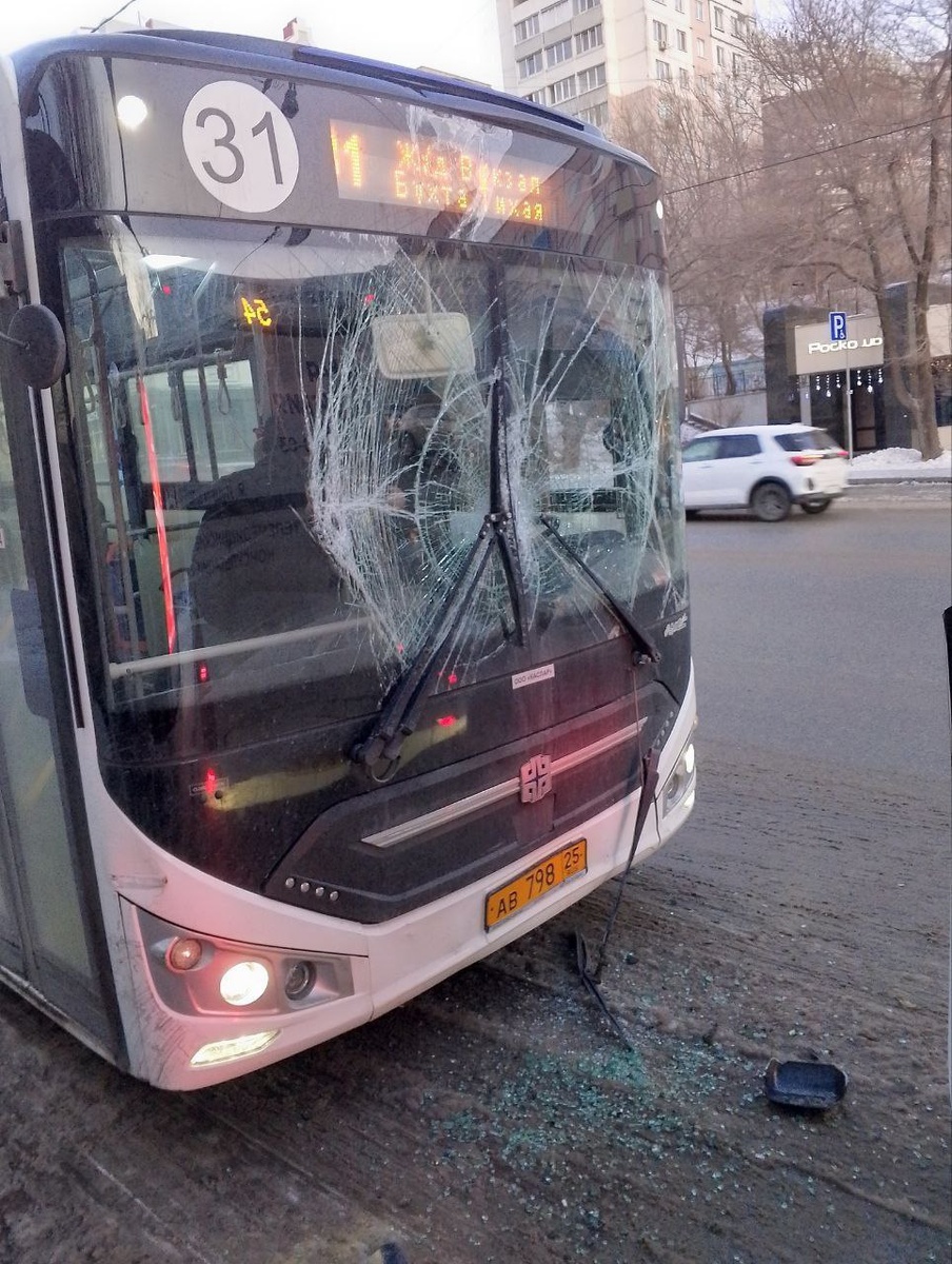 ⤵️ 🚌 Пассажирский автобус 31 маршрута въехал в другой автобус на остановке «Авангард» во Владивостоке Все произошло на глазах изумленных граждан на остановке. То ли у автобуса отказали тормоза, то ли просто настолько скользко. Сообщается, что остановки все во льду. 📍@yurovmedia