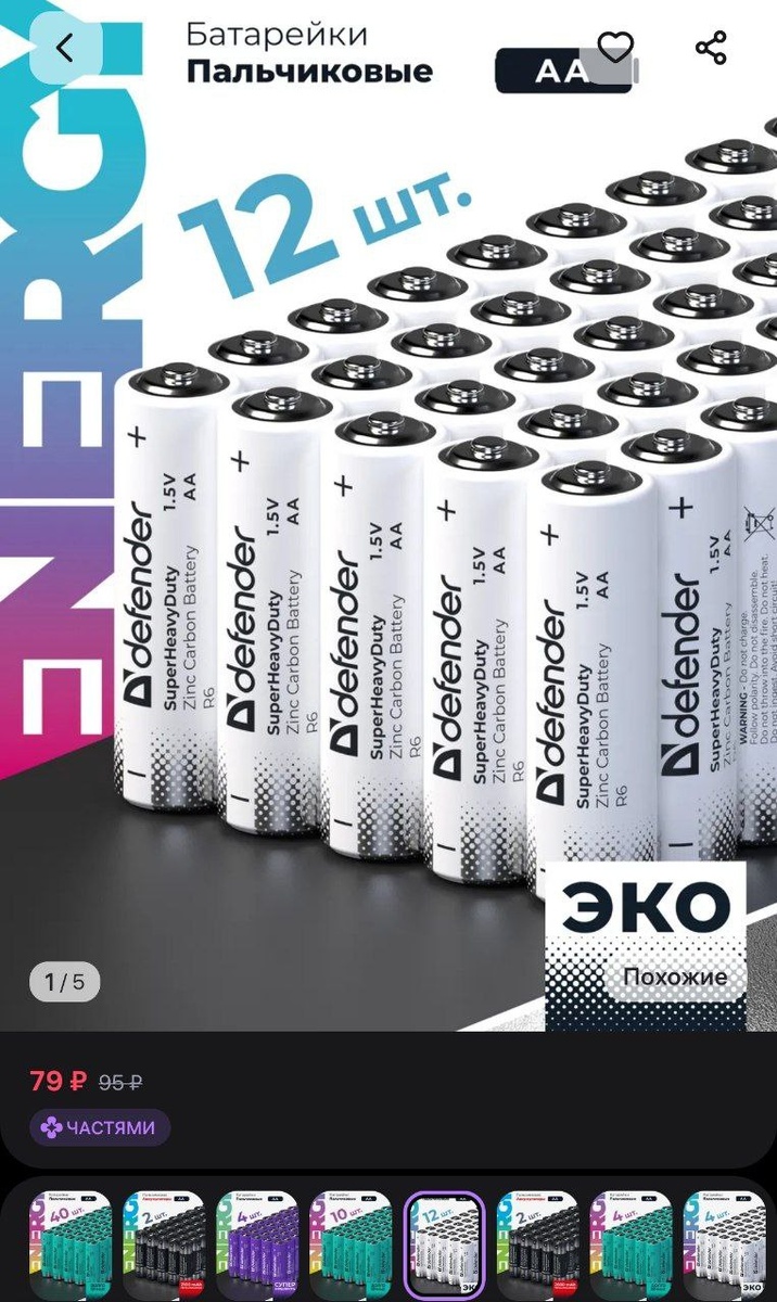 Батарейки пальчиковые АА солевые 12 штук DEFENDER за 79₽