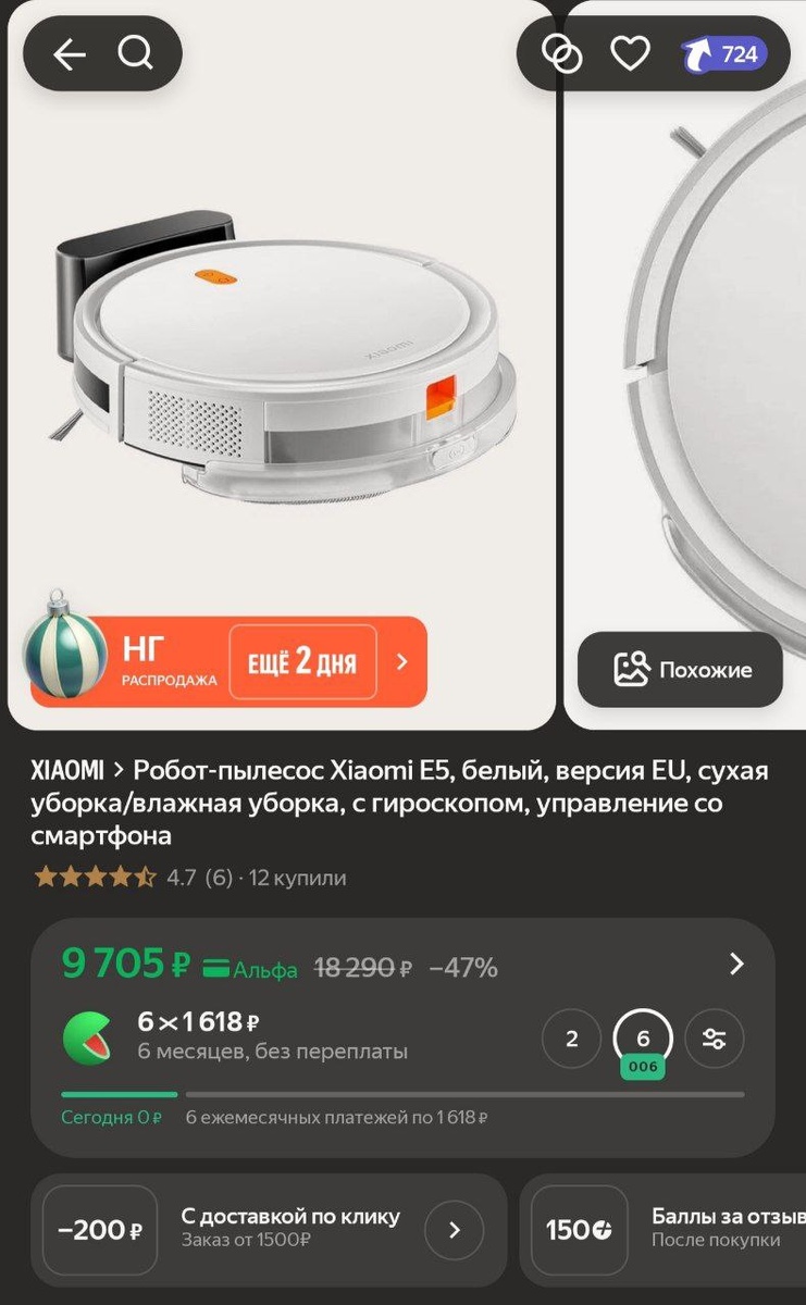 Робот-пылесос Xiaomi E5, белый, версия EU, сухая уборка/влажная уборка, с гироскопом, управление со смартфона за 9705₽🔥
