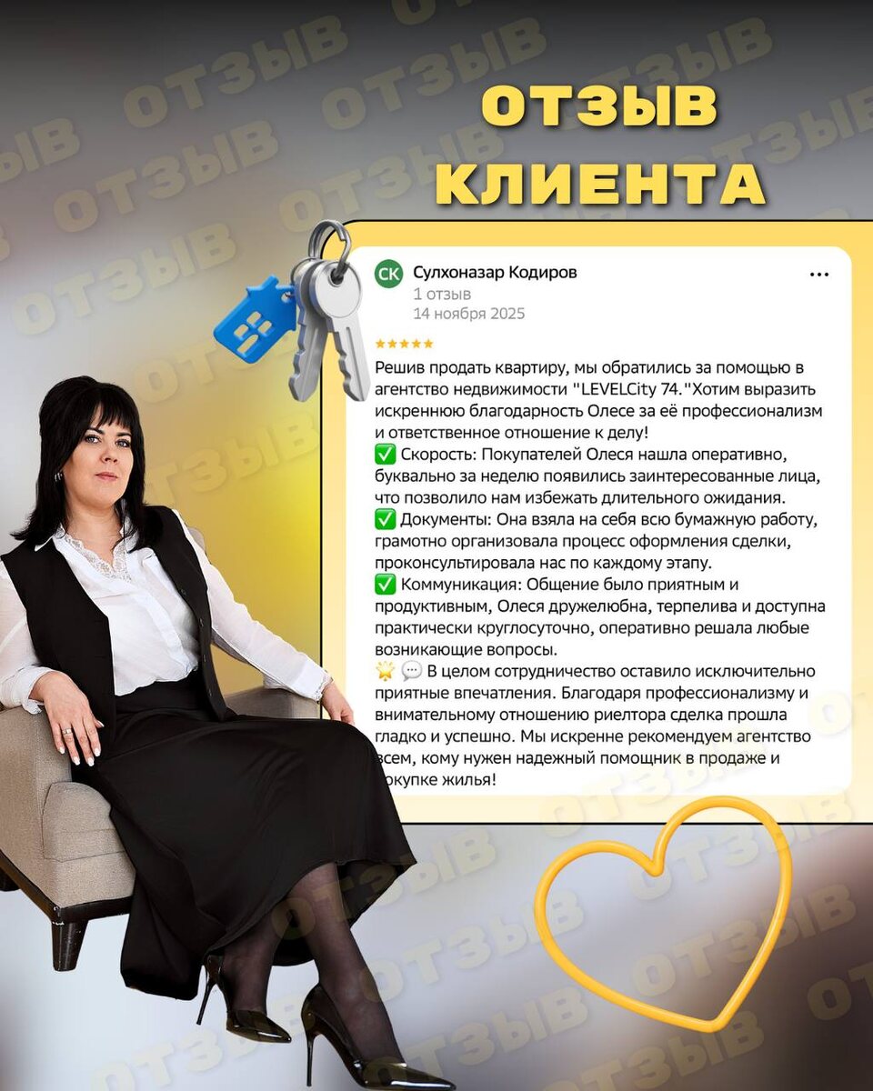 ?» Когда к нам обращаются клиенты, мы часто слышим одно и то же: «Не хочется продавать квартиру полгода, постоянно ездить на показы и разбираться с документами». Этот страх знаком многим — много пустых просмотров, бесконечные звонки и непонимание, как всё оформить правильно и безопасно. С таким запросом к нам и обратились клиенты. До обращения к нам в агентство Level City у них уже был опыт самостоятельных попыток продажи: • много звонков «просто посмотреть», • торг без реального намерения купить, • полное непонимание, как безопасно провести сделку К задаче подключилась наш специалист Олеся Булатова. ➡️ Страх №1 — продажа затянется Благодаря понятной стратегии уже в первую неделю появились реальные заинтересованные клиенты. ➡️ Страх №2 — документы и ошибки Всю бумажную часть мы взяли на себя. ➡️ Страх №3 — остаться без связи с агентом Специалист была постоянно на связи с клиентами, оперативно отвечала на вопросы и сразу решала возникающие ситуации. 📌Итог: квартира продана без за