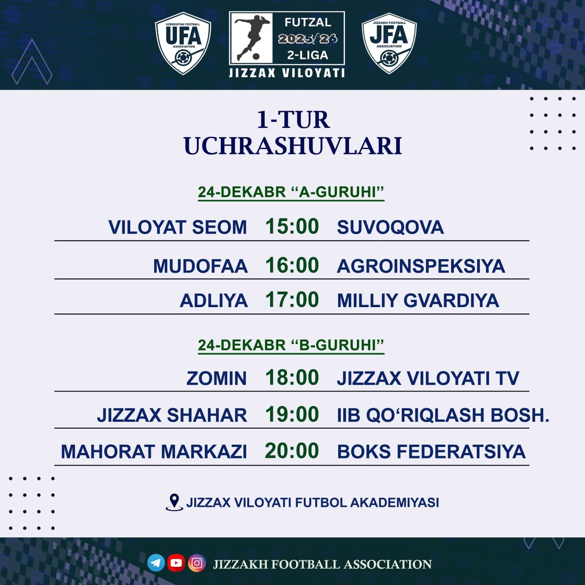 1-тур учашувлар вақти ва куни билан танишинг ☝🏻 Каналимизга обуна бўлинг ва энг сўнгги янгиликларни кузатиб боринг Jizzaxnews |Тelegram | Facebook | Dzen | YouTubе