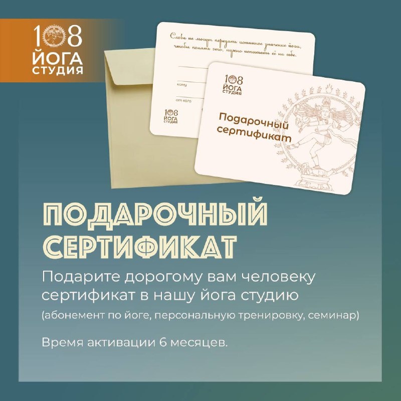 Приветствуем, друзья👌 Наша студия рада предложить вам идеальное решение для вопроса «что подарить?» Подарочный сертификат - это замечательный способ выразить заботу! Это лучший подарок, который поможет вашим близким открыть для себя новое или продолжить наслаждаться практикой йоги 👯♀️ Почему стоит выбрать сертификат? Это уникальная возможность познакомиться с йогой и другими практиками нашей студии. Ваши близкие смогут выбрать то, что им действительно интересно, и насладиться моментом заботы о себе. 🟢 Условия использования: Срок действия: Сертификат необходимо активировать в течение 6 месяцев с момента покупки. Дата окончания действия указана на самом сертификате. 🟢Виды сертификатов: На услугу: Даритель может выбрать конкретную услугу, на которую будет распространяться сертификат. На определённую сумму: Получатель может самостоятельно выбрать любую услугу в студии. Если суммы сертификата не хватит, можно будет доплатить на месте. 🪨 Форматы сертификатов: • Бумажный серти