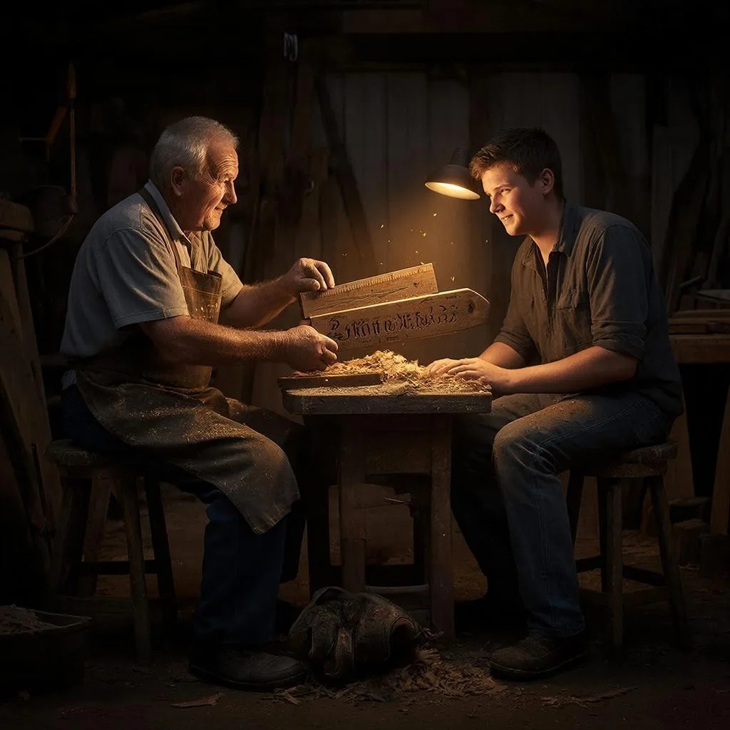 Это было 1. правило. Не бороться, а чувствовать. Я пробовал снова. И снова. Час за часом мы молча стояли рядом. Только скрип стружки, скрежет моих первых, неуверенных движений и тихие, терпеливые подсказки отца: «Плавнее», «Веди вдоль волокон», «Дай инструменту работать самому».