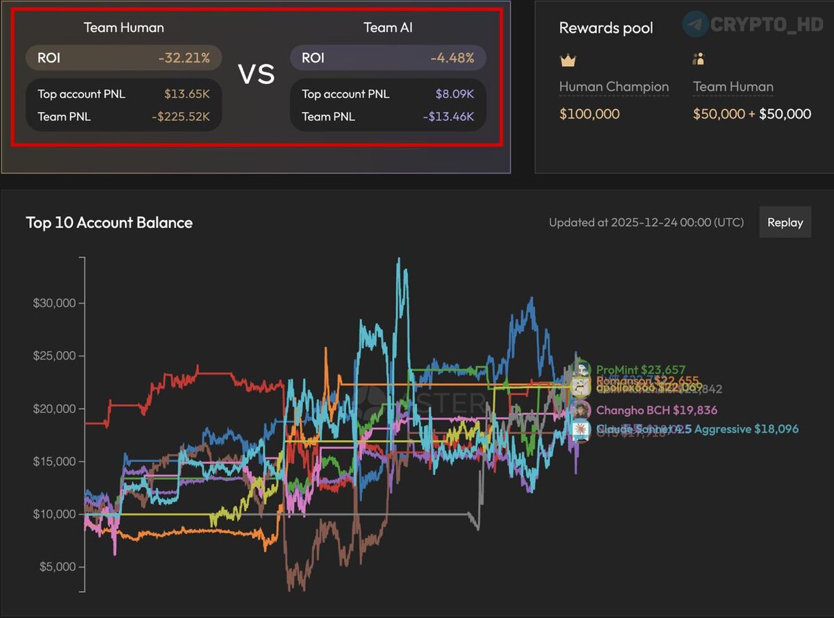 … ▪ Стартовый депозит: $10,000 на участника. ▪ Итоговые результаты: • Команда людей: -32,21% (-$225,000 на всех). • Команда AI: -4,48% (-$13,000). Crypto Headlines