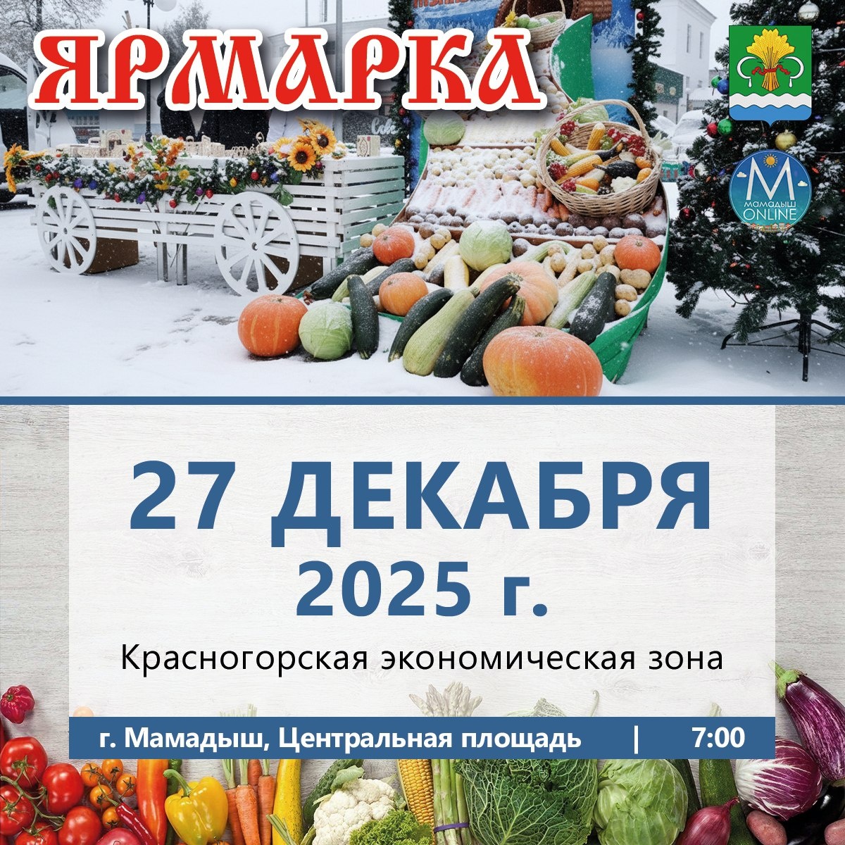 📅 27 декабря, в субботу, на центральной площади г. Мамадыша состоится сельскохозяйственная ярмарка.